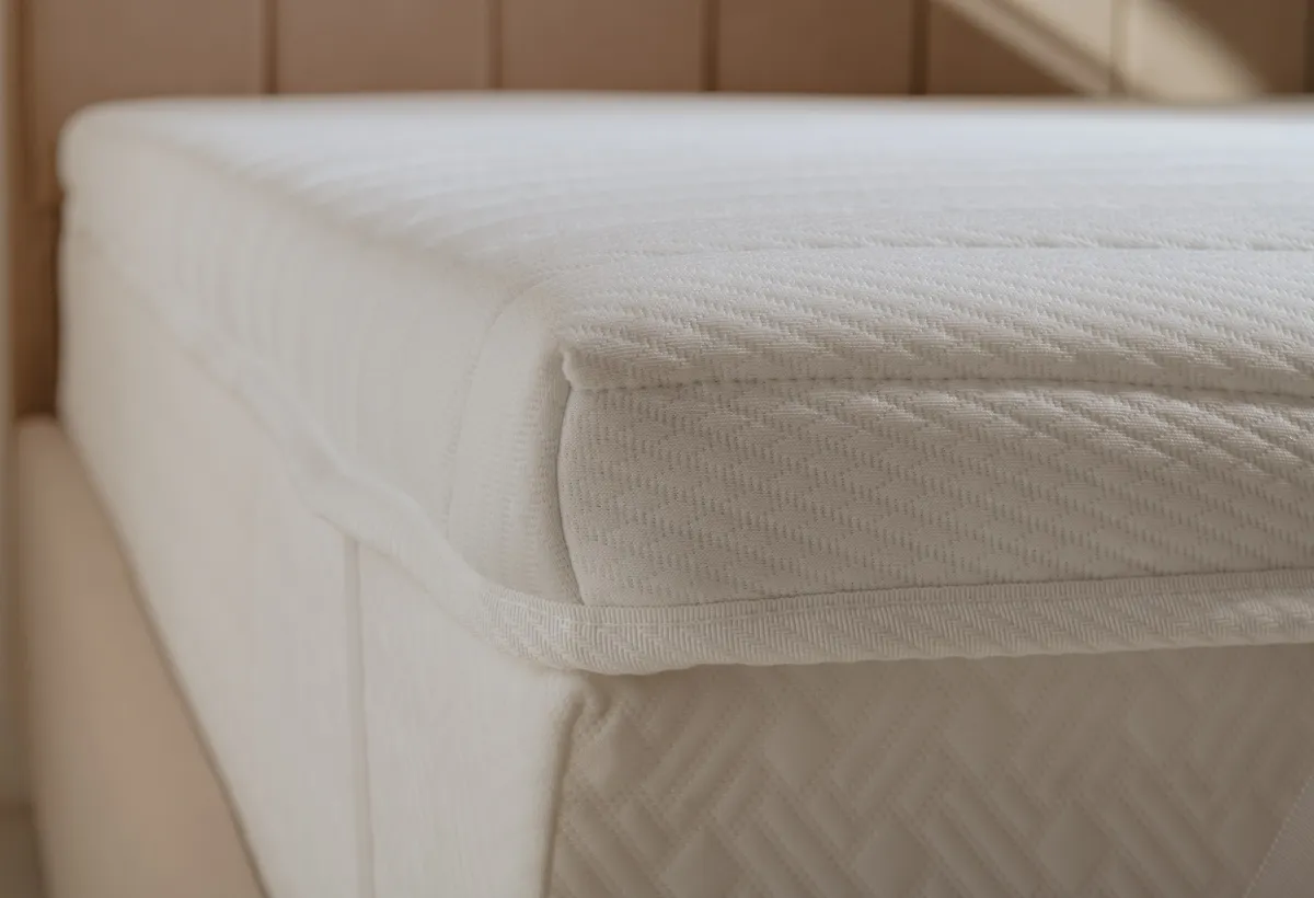 Главная задача этой модели — создать плотную и ровную поверхность. Если ваш старый матрас пружинит или на нём чувствуются ямы, этот топпер это исправит. В основе — два слоя. Снизу 6 см ортопедической пены для упругой поддержки. Сверху — 1 см плиты из био-кокоса. Это смесь натуральных волокон, она очень плотная и не проминается. За счёт этого топпер получается жёстким, выше средней жёсткости. Чехол из мягкого трикотажа скрывает эту жёсткую начинку. Он приятный на ощупь, и за ним легко ухаживать.